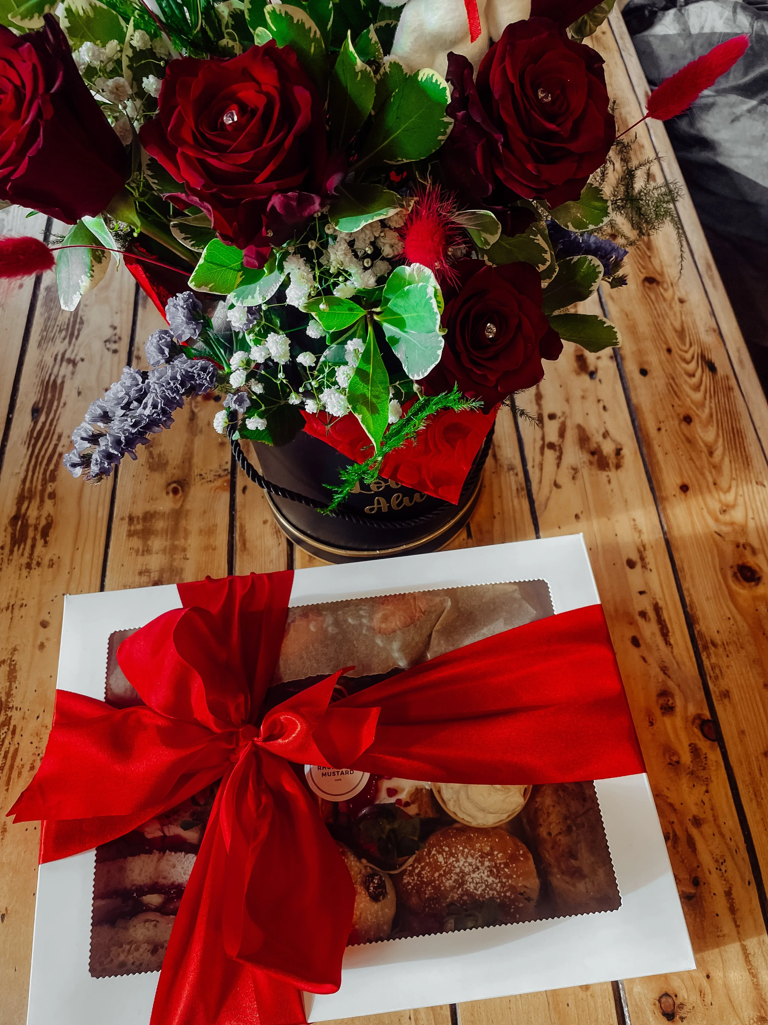Food, flowers and fizz! We’ve teamed up with our florist neighbour, Splendid Swag Florist, so you can build your own for a custom gift for your other half